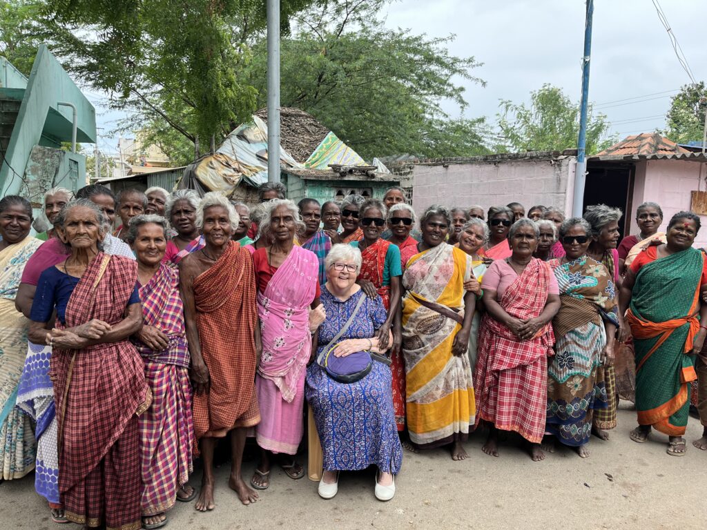 We’re-started our work in Madurai in an area near rubbish tips identified by Muthukumar where there were numerous street elders who scavenged for their daily food. Most slept on the streets and were sick, to help them we rented a small house. It was totally inadequate having steep stairs but it was a beginning. We had 30 plus ladies living with us within days and eventually we were able to move to a more suitable building. This building was close to the slum that was to become the centre for all of our work in Madurai. In that slum were other extremely poor elders, many almost abandoned by their families. Concern for them led to the establishment of a daily lunch centre. For the past 18 years we have provided a daily lunch for at least 50 destitute elders. We needed a kitchen and a house became available for rent that enabled us to expand our work with a local slum.
